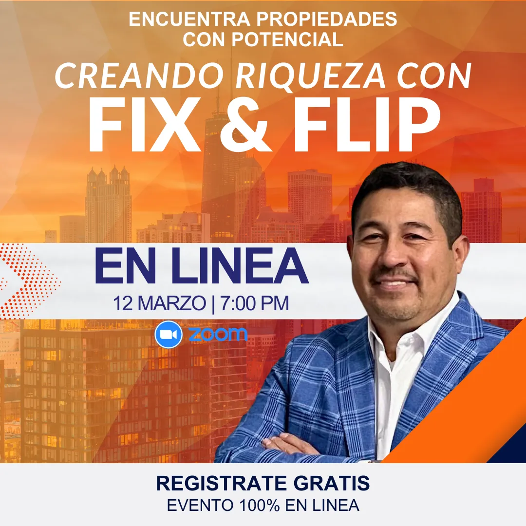 Este evento exclusivo está diseñado para latinos que desean dominar el arte del financiamiento inmobiliario: desde flips hasta rentas, pasando por multiunidades y construcciones nuevas.